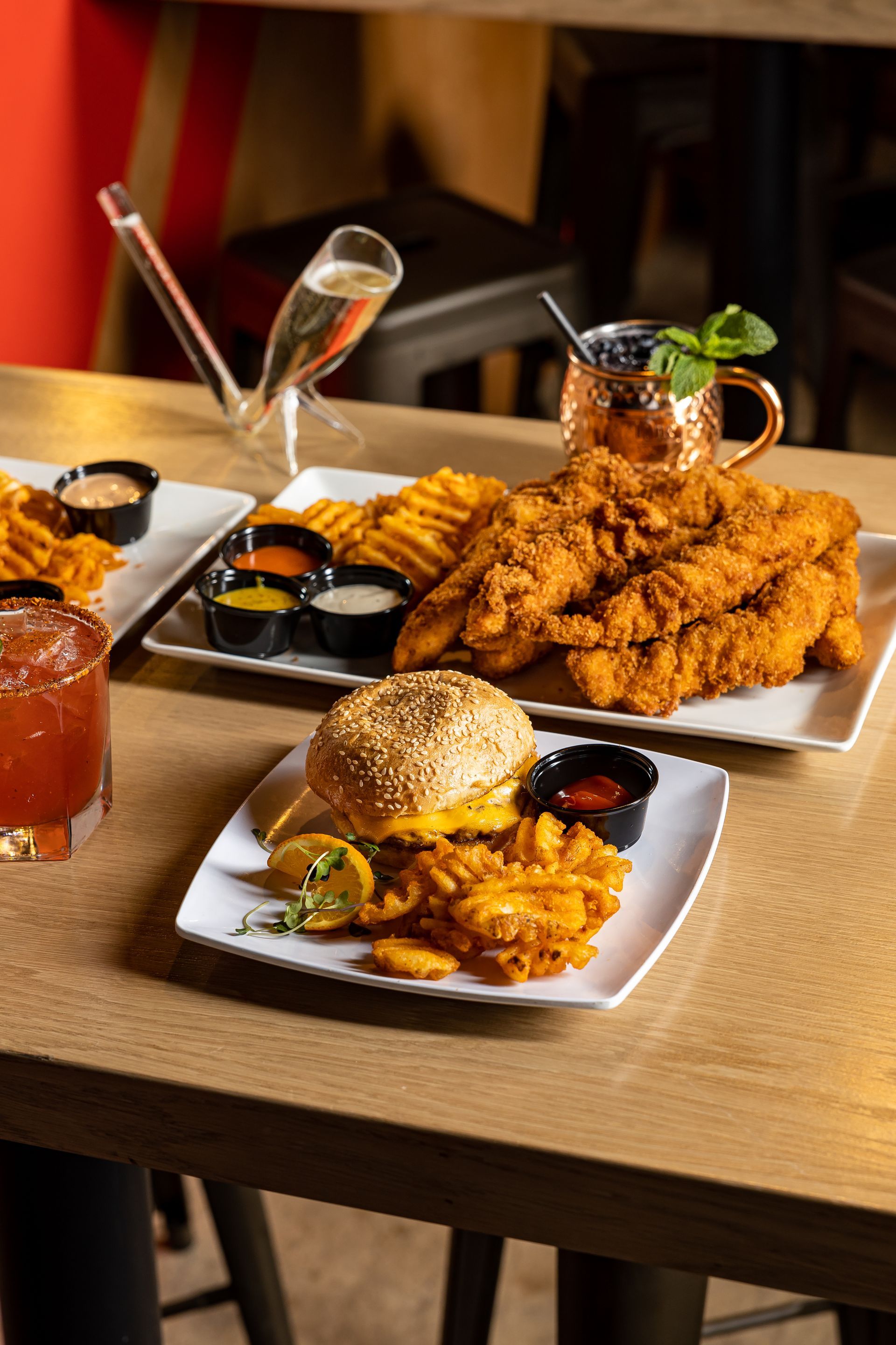 We’re talkin’ crispy chicken tenders, cheeky cocktails, and a laid-back vibe that’s playful, a little nostalgic, and built for a good time — arcade games included.